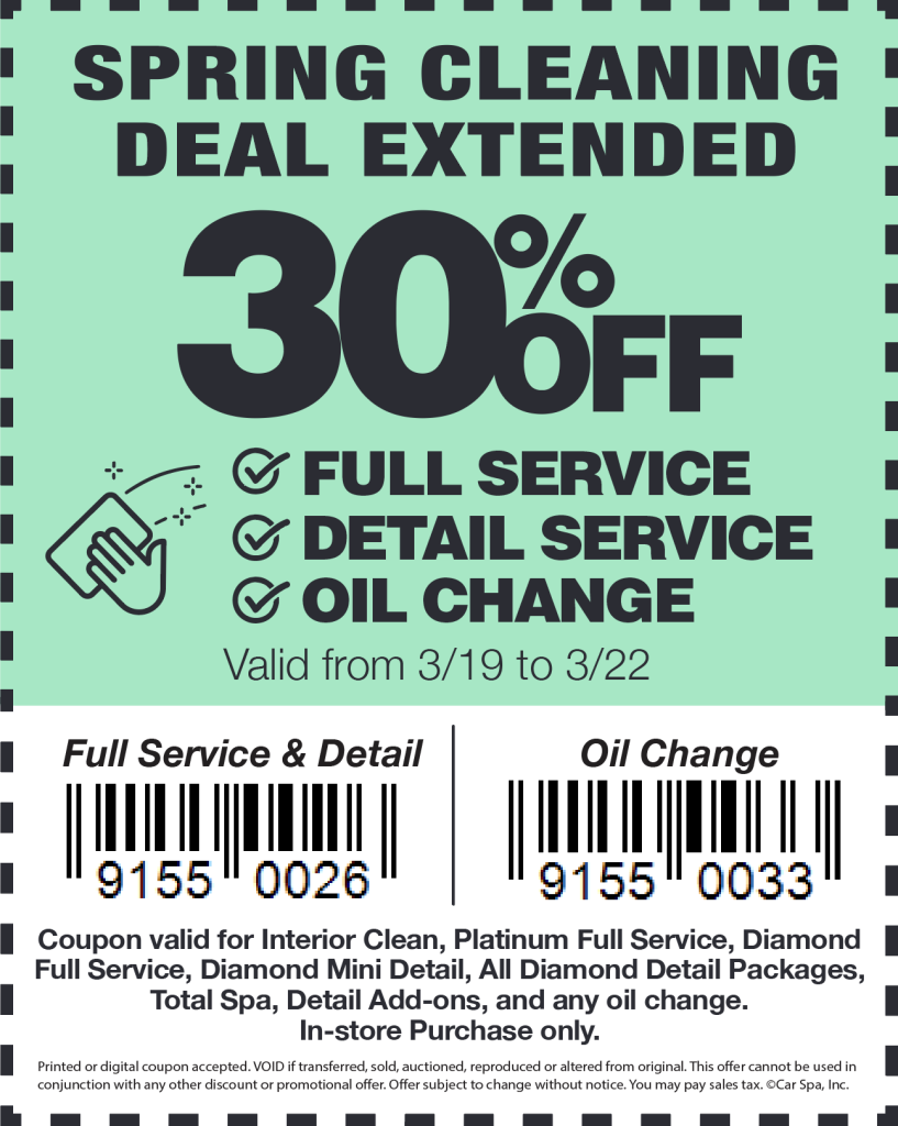 We have a variety of offers to share with our valued customers. Don’t forget, if you join our Unlimited Car Wash Club, you not only get unlimited washes each month but also 20% Off any detail service or oil change services at any Car Spa location.