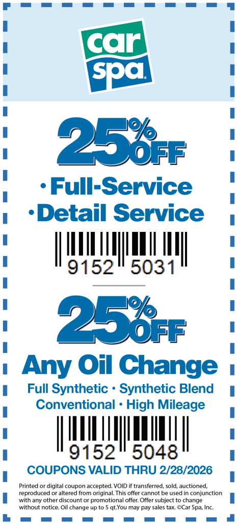 We have a variety of offers to share with our valued customers. Don’t forget, if you join our Unlimited Car Wash Club, you not only get unlimited washes each month but also 20% Off any detail service or oil change services at any Car Spa location.