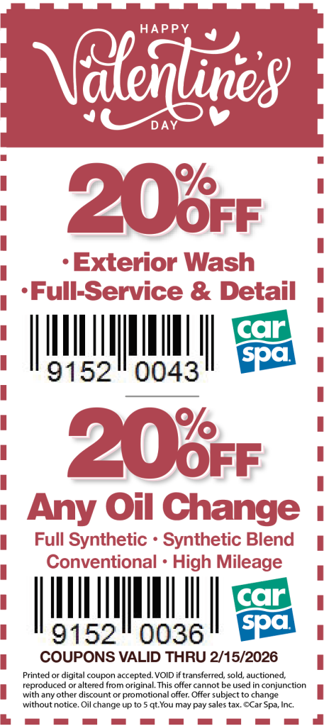 We have a variety of offers to share with our valued customers. Don’t forget, if you join our Unlimited Car Wash Club, you not only get unlimited washes each month but also 20% Off any detail service or oil change services at any Car Spa location.